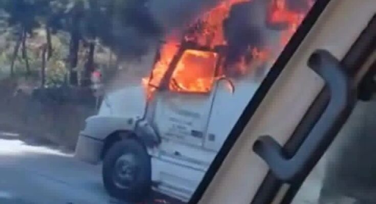 De acuerdo con testigos presenciales, el incendio comenzó de forma repentina en la cabina del camión. Primero fue un pequeño destello, casi imperceptible. Luego, una llamarada violenta brotó desde el interior, seguida por una espesa nube de humo negro que se elevó hacia el cielo, visible a varios kilómetros de distancia.